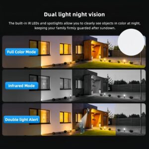 microphone and microphone, which can record sound in real time. Three Vision Modes Setting: Day Vision, Infrared Night Vision and Full Color Night Vision.