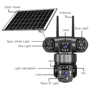 Special Features :- NIGHT VISION, motion detection, Waterproof / Weatherproof, Built-in Siren, PAN-TILT, TWo-way Audio, LoW Power, PIR + Radar dual induction detection